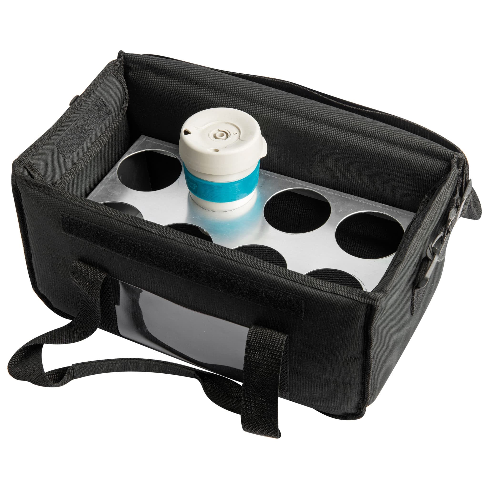 Η ισοθερμική τσάντα μεταφοράς (delivery) 8 θέσεων με βάση είναι η ιδανική λύση για ασφαλή και οργανωμένη μεταφορά ροφημάτων. Με χωρητικότητα 8 θέσεων, κρατά τα ποτήρια σταθερά και βοηθά να διατηρείται η θερμοκρασία, μειώνοντας τον κίνδυνο για αναποδογυρίσματα και διαρροές.